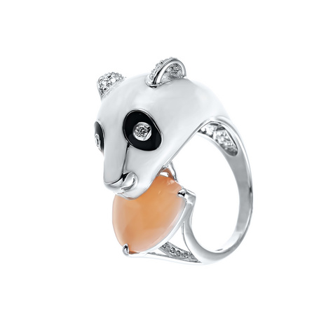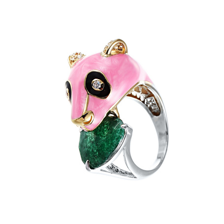 Кольцо из серебра 925 пробы с эмалью, фианитами и ювелирным стеклом