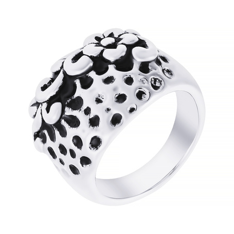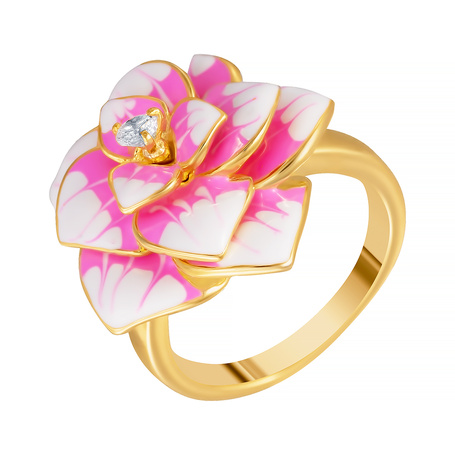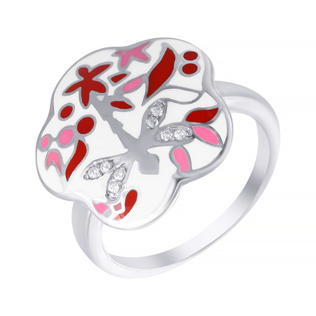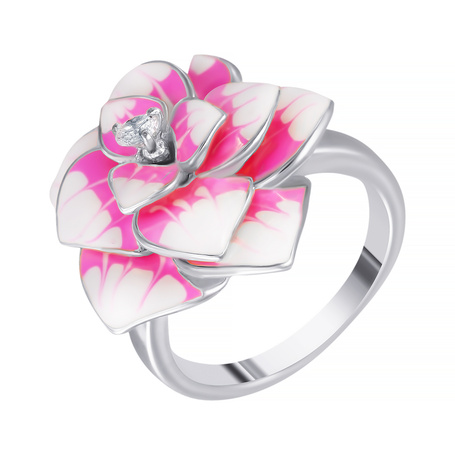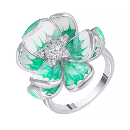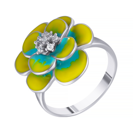 Кольцо из серебра 925 пробы с фианитами и эмалью цветок