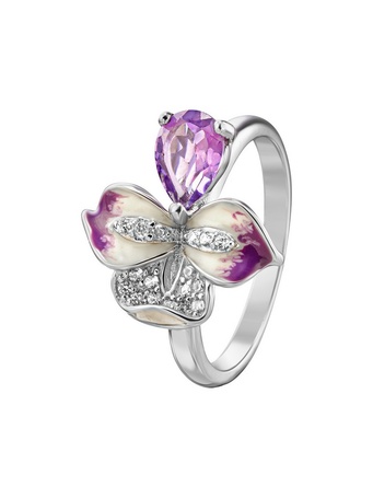 Кольцо из серебра 925 пробы с аметистами, топазами и эмалью цветок