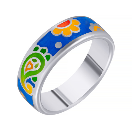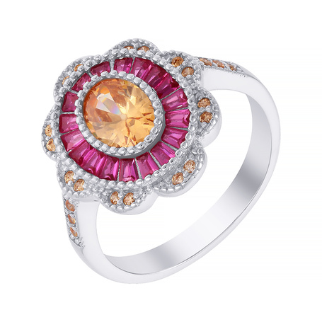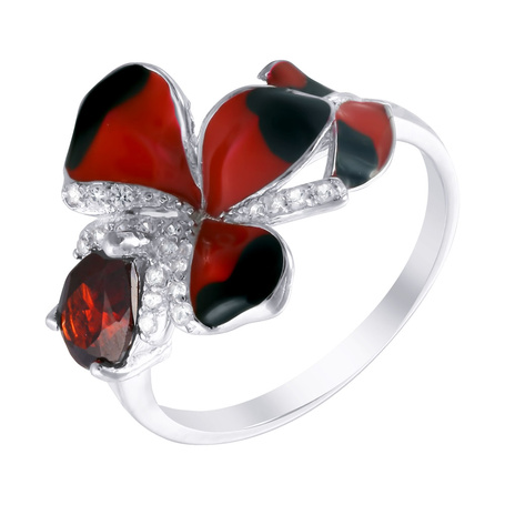 Кольцо из серебра 925 пробы с гранатами, топазами и эмалью цветок