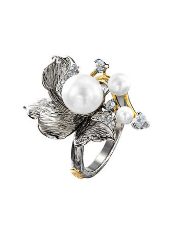 Кольцо из серебра 925 пробы с жемчугами и топазами цветок
