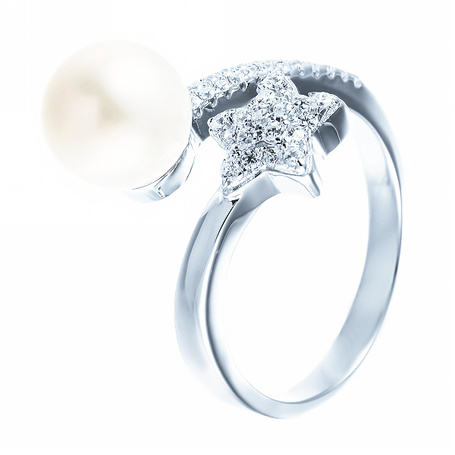 Кольцо из серебра 925 пробы с фианитами и жемчугами
