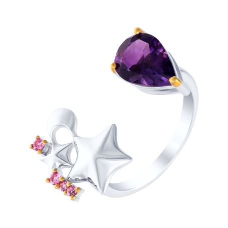 Кольцо из серебра 925 пробы с аметистами и фианитами