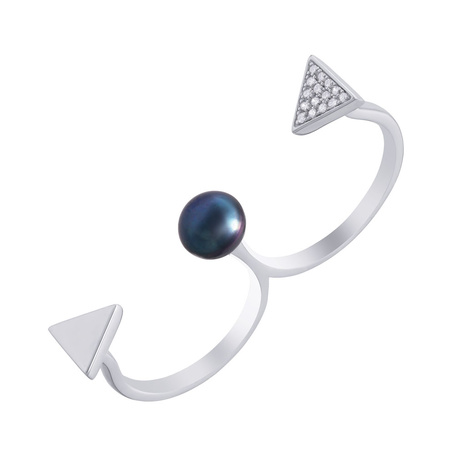 Кольцо из серебра 925 пробы с фианитами и жемчугами