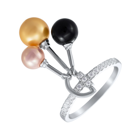 Кольцо из серебра 925 пробы с фианитами, жемчугом майорика и пластиком