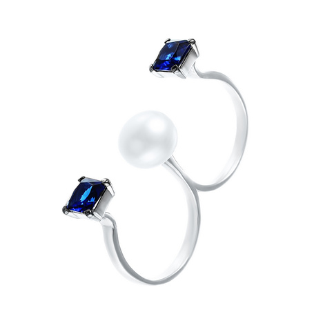 Кольцо из серебра 925 пробы с ювелирным стеклом и жемчугами