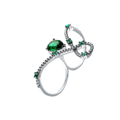 Кольцо из серебра 925 пробы с фианитами и ювелирным стеклом
