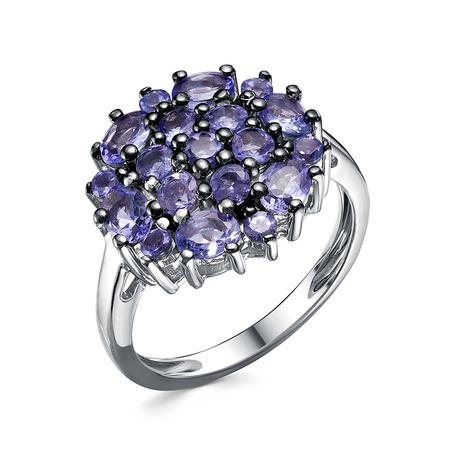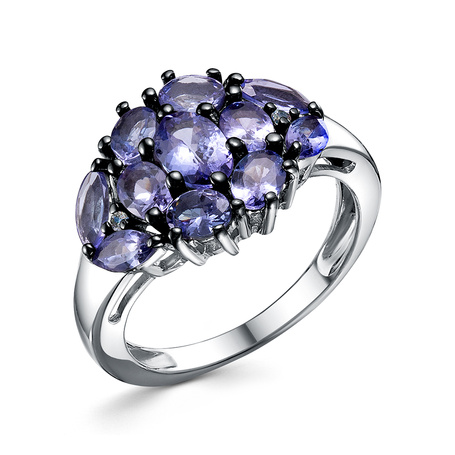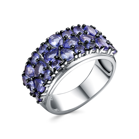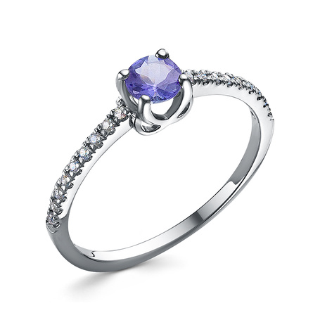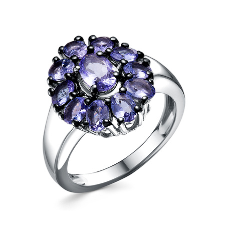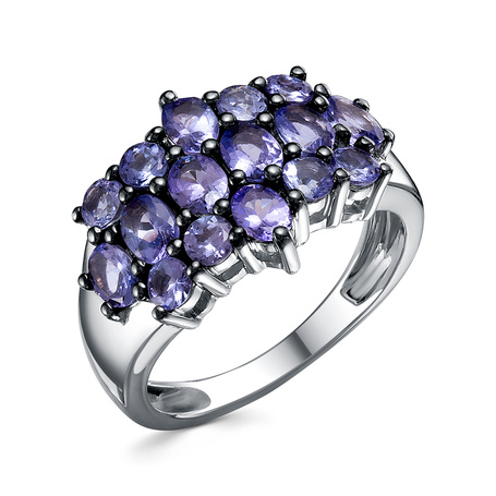 Кольцо из серебра 925 пробы с танзанитами и фианитами