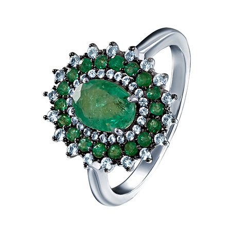 Кольцо из серебра 925 пробы с бериллами и сапфирами