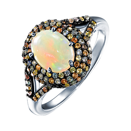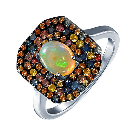 Кольцо из серебра 925 пробы с опалами и сапфирами