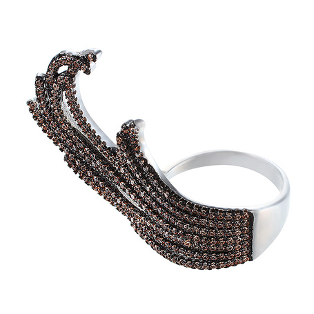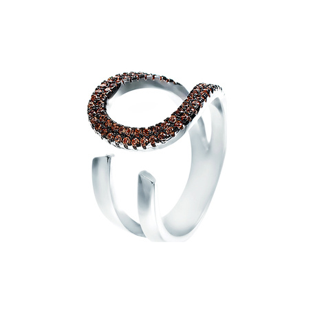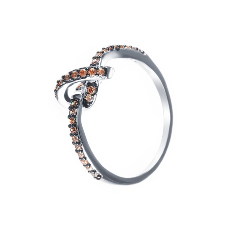 Кольцо из серебра 925 пробы с фианитами и кожей