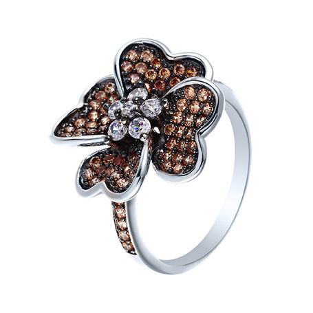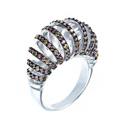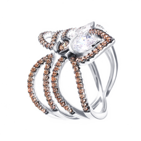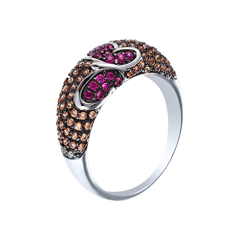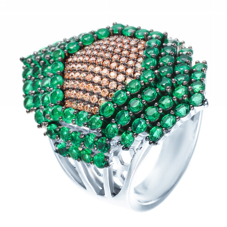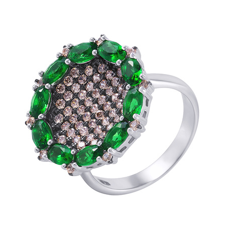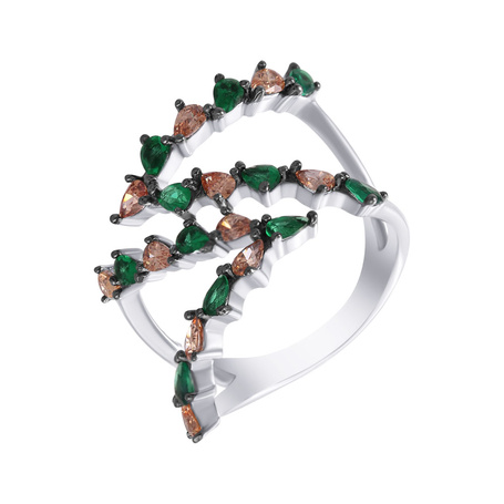 Кольцо из серебра 925 пробы с ювелирным стеклом и фианитами