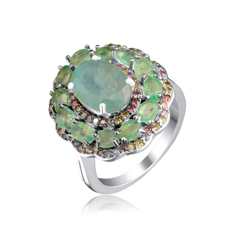 Кольцо из серебра 925 пробы с бериллами и сапфирами