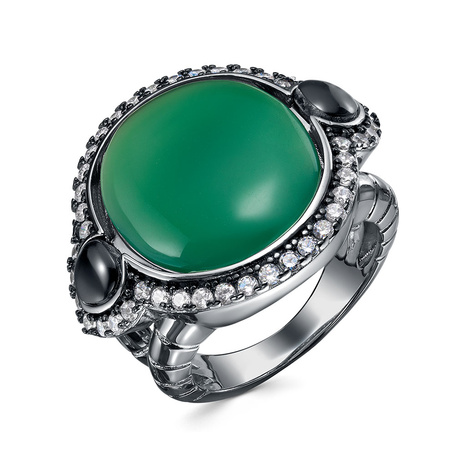 Кольцо из серебра 925 пробы с фианитами, агатом и ониксом