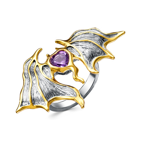 Кольцо из серебра 925 пробы с шпинелью, аметистами и эмалью