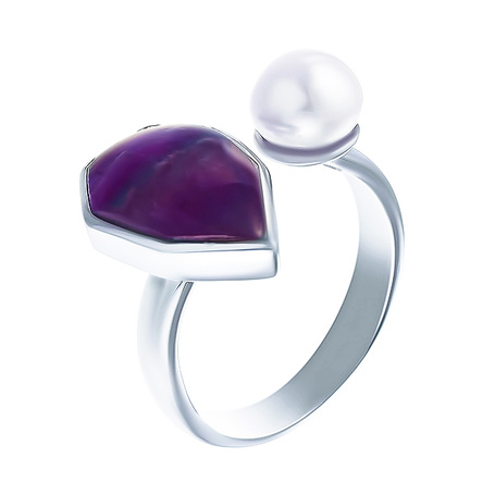 Кольцо из серебра 925 пробы с аметринами и жемчугами