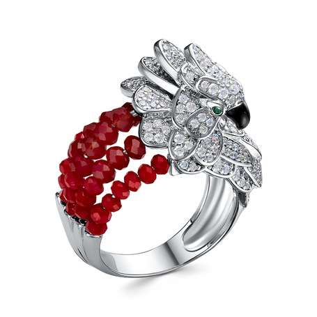 Кольцо из серебра 925 пробы с фианитами, карнелианом и эмалью