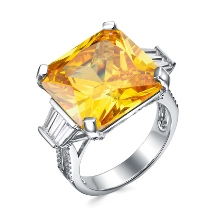 Кольцо из серебра 925 пробы с цитринами, сапфирами и фианитами