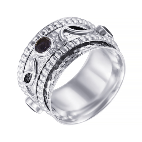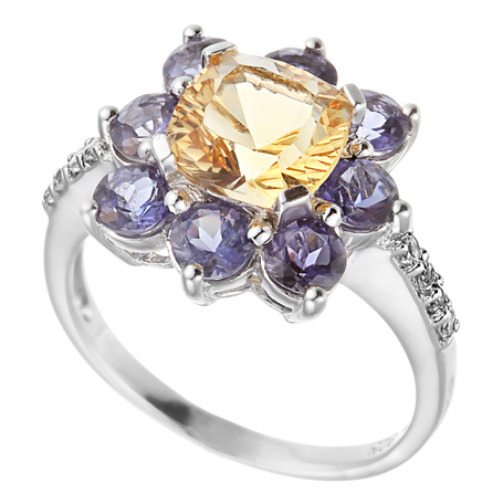 Кольцо из серебра 925 пробы с цитрином, топазами и иолитами