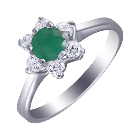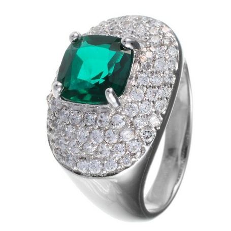 Кольцо из серебра 925 пробы с фианитами и изумрудом