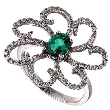 Кольцо из серебра 925 пробы с изумрудом синтетическим и фианитами