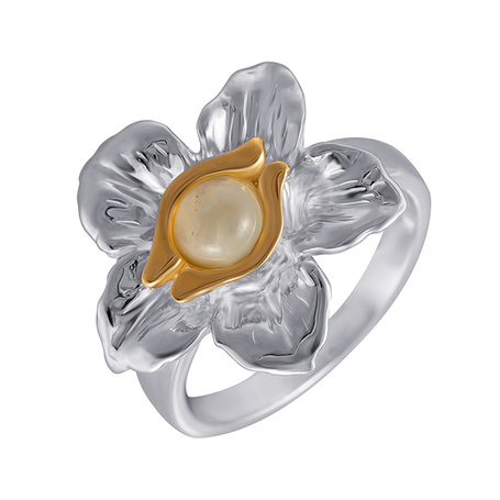 Кольцо из серебра 925 пробы с халцедонами и эмалью
