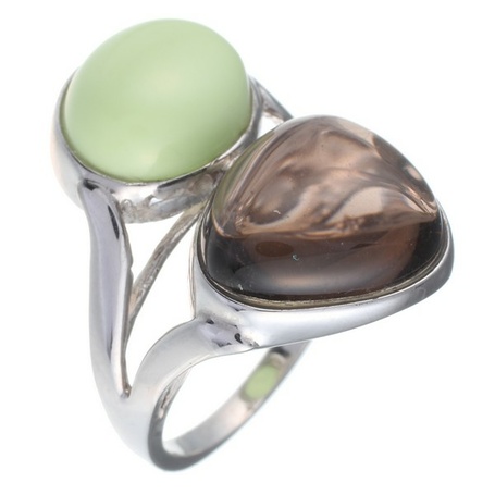 Кольцо из серебра 925 пробы с хризопразом и раухтопазом