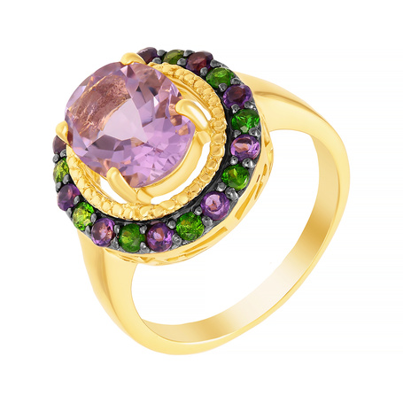 Кольцо из серебра 925 пробы с аметистами, перидотами и хромдиопсидом