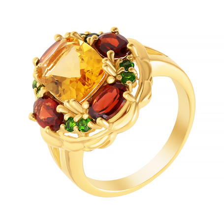 Кольцо из серебра 925 пробы с цитринами, гранатами и хромдиопсидом