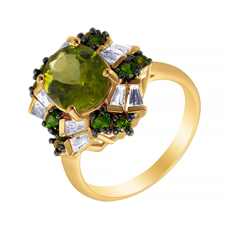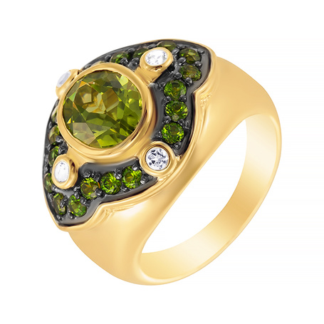 Кольцо из серебра 925 пробы с перидотами, хромдиопсидом и топазами