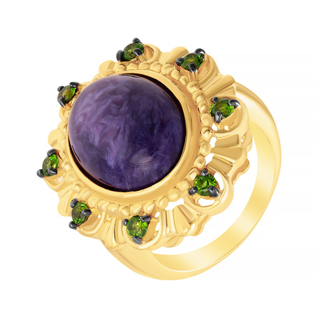 Кольцо из серебра 925 пробы с чароитами и хромдиопсидом