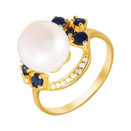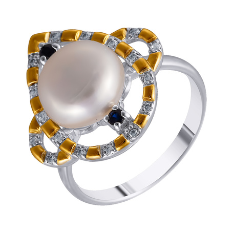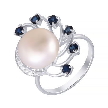 Кольцо из серебра 925 пробы с жемчугами, корундами и фианитами