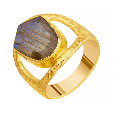 Кольцо из серебра 925 пробы с лабрадоритом и фианитами