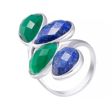 Кольцо из серебра 925 пробы с агатом и лазуритами