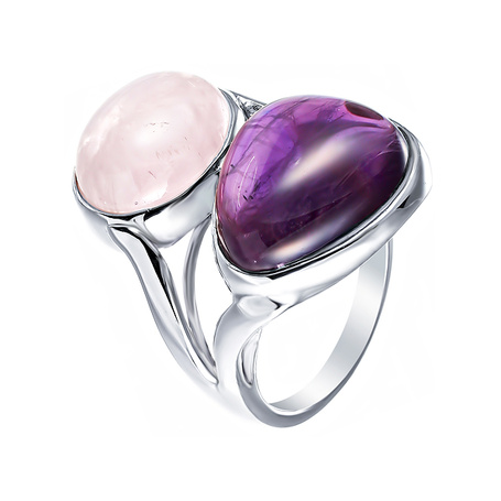 Кольцо из серебра 925 пробы с аметистом и морганитом