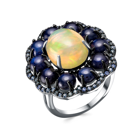 Кольцо из серебра 925 пробы с опалами и сапфирами