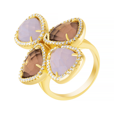 Кольцо из серебра 925 пробы с агатом, раухтопазами и фианитами