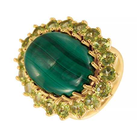 Кольцо из серебра 925 пробы с родохрозитами и перидотами
