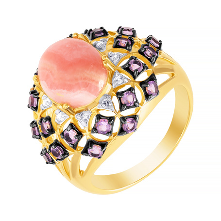 Кольцо из серебра 925 пробы с родохрозитами, аметистами и топазами