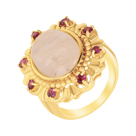 Кольцо из серебра 925 пробы с лунным камнем и родолитами