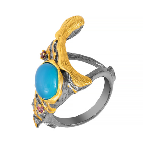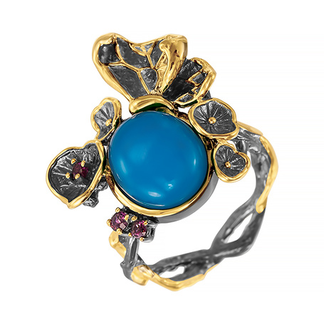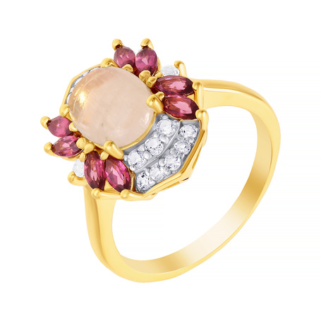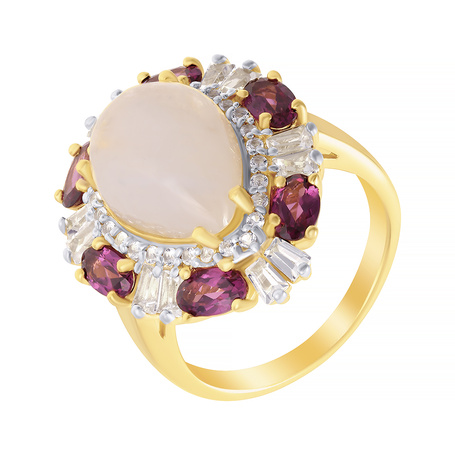 Кольцо из серебра 925 пробы с лунным камнем, родолитами и топазами