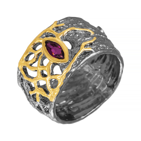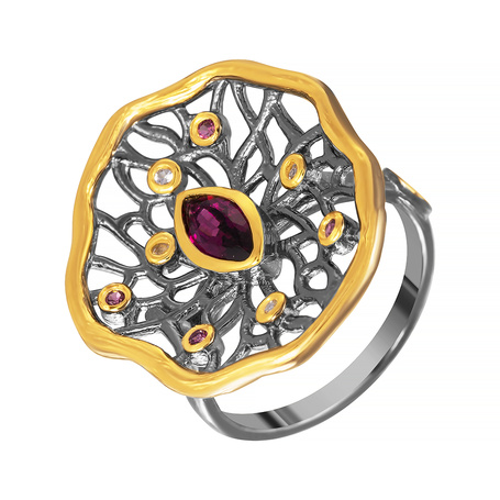 Кольцо из серебра 925 пробы с родолитами и топазами