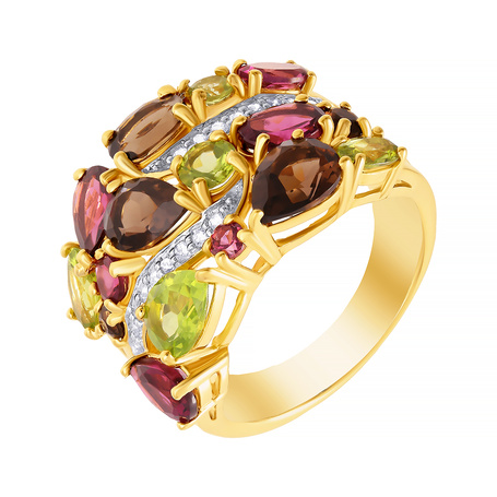 Кольцо из серебра 925 пробы с цитринами, раухтопазами, родолитами и перидотами