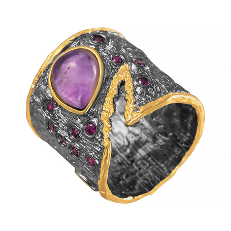 Кольцо из серебра 925 пробы с аметистами и родолитами