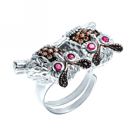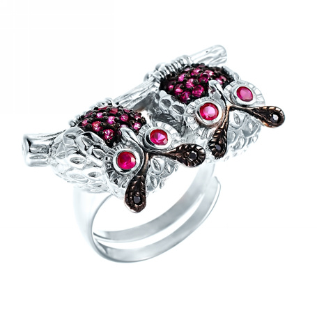 Кольцо из серебра 925 пробы с рубинами и фианитами