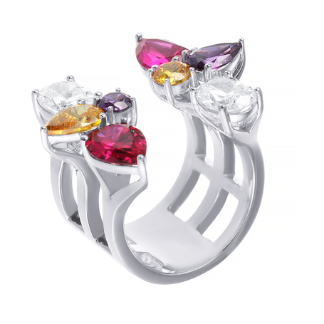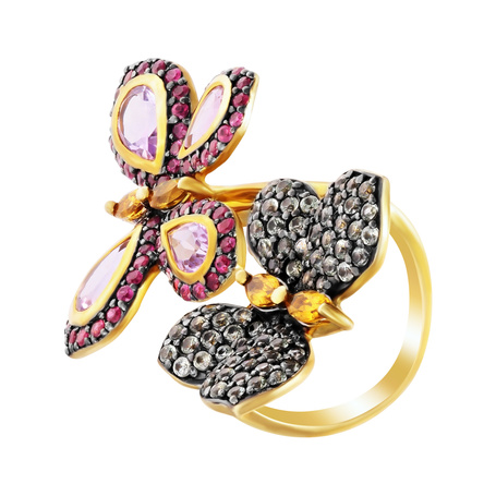 Кольцо из серебра 925 пробы с аметистами, цитринами, сапфирами и рубинами