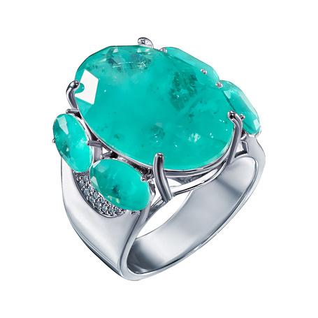 Кольцо из серебра 925 пробы с фианитами и ювелирным стеклом