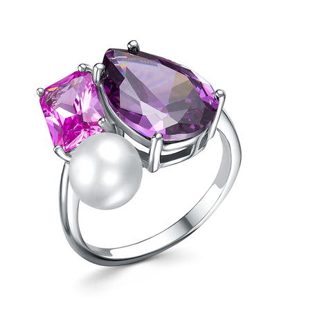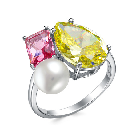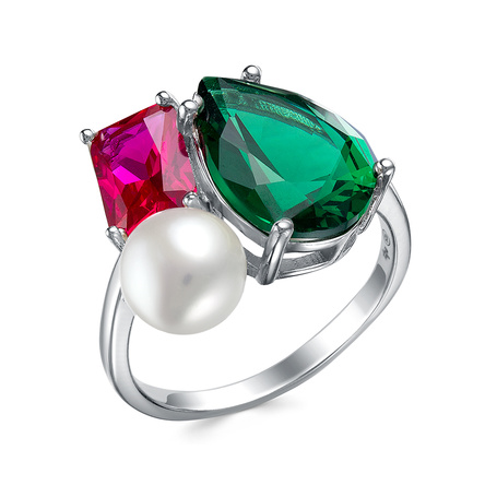 Кольцо из серебра 925 пробы с ювелирным стеклом и жемчугами