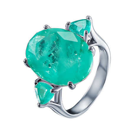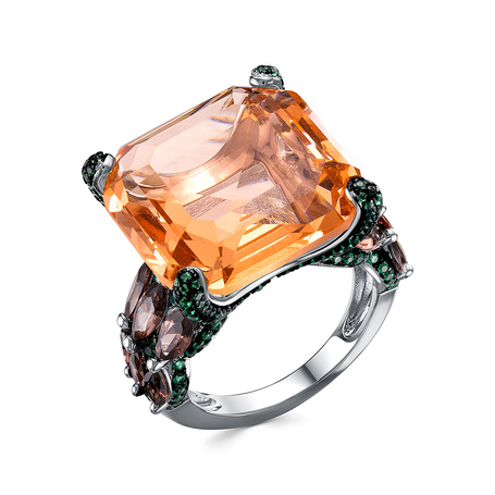 Кольцо из серебра 925 пробы с ювелирным стеклом и фианитами