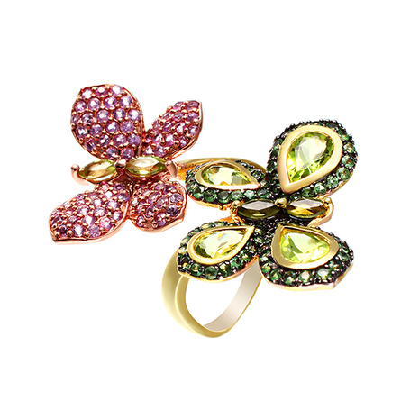 Кольцо из серебра 925 пробы с перидотами и цаворитами